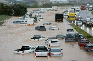 So a heavy wind and storm hit the South African city of Durban and have left most of the street flooded. Not just streets but cars were virtually submerged in the flood and properties destroyed.